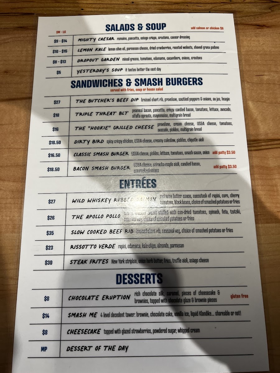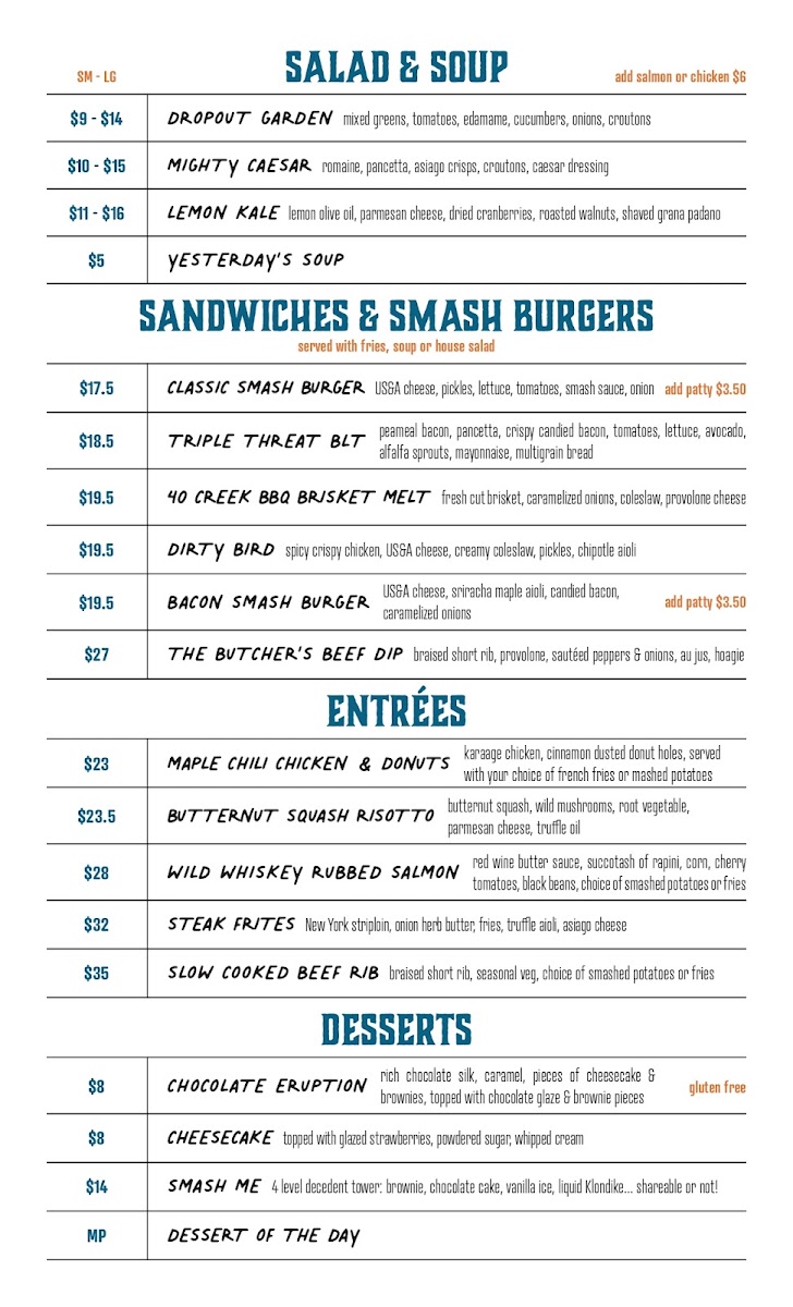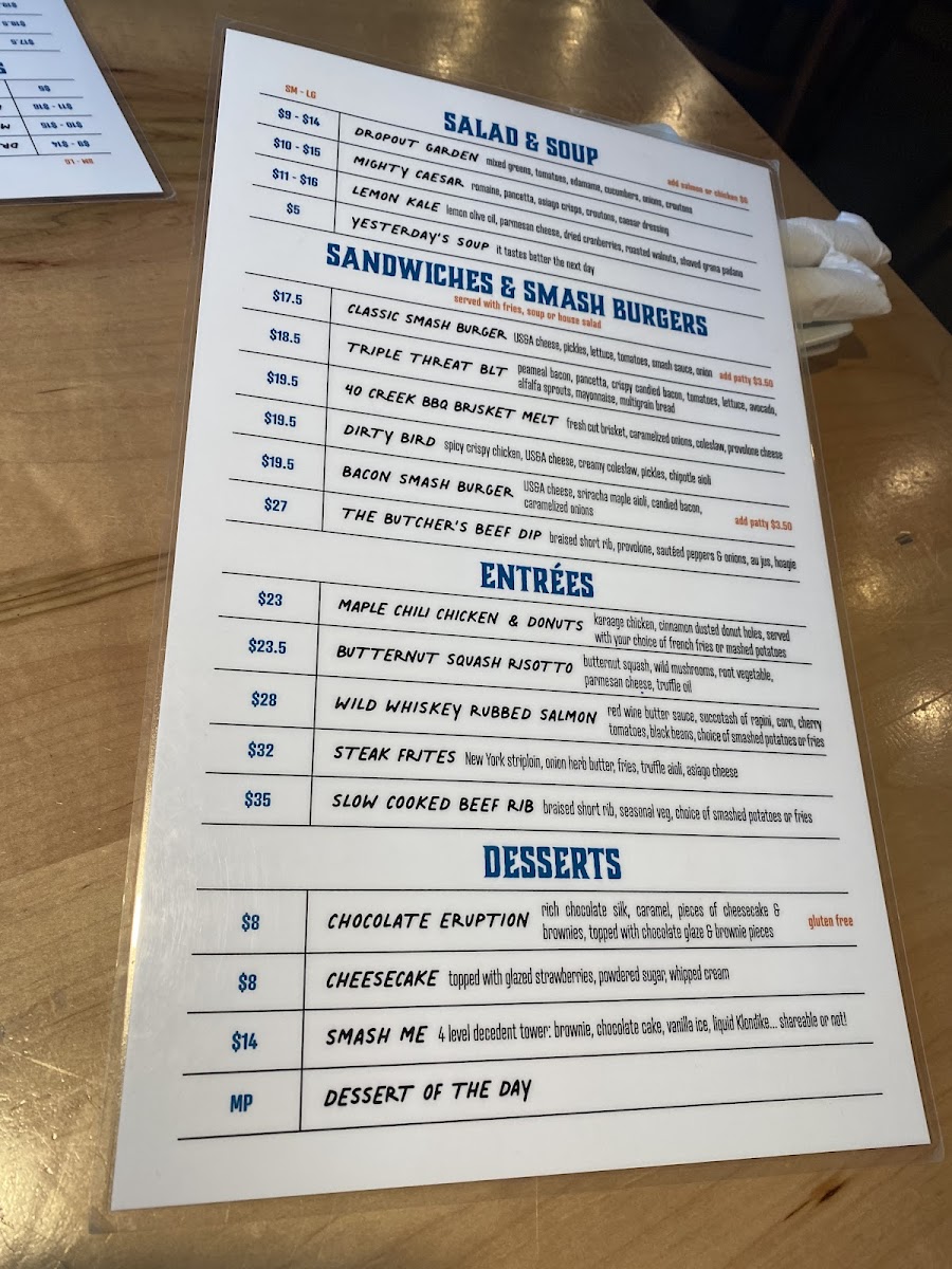 Braised Short Rib, Seasonal Veg, Choice of Smashed Potatoes or Fries.
