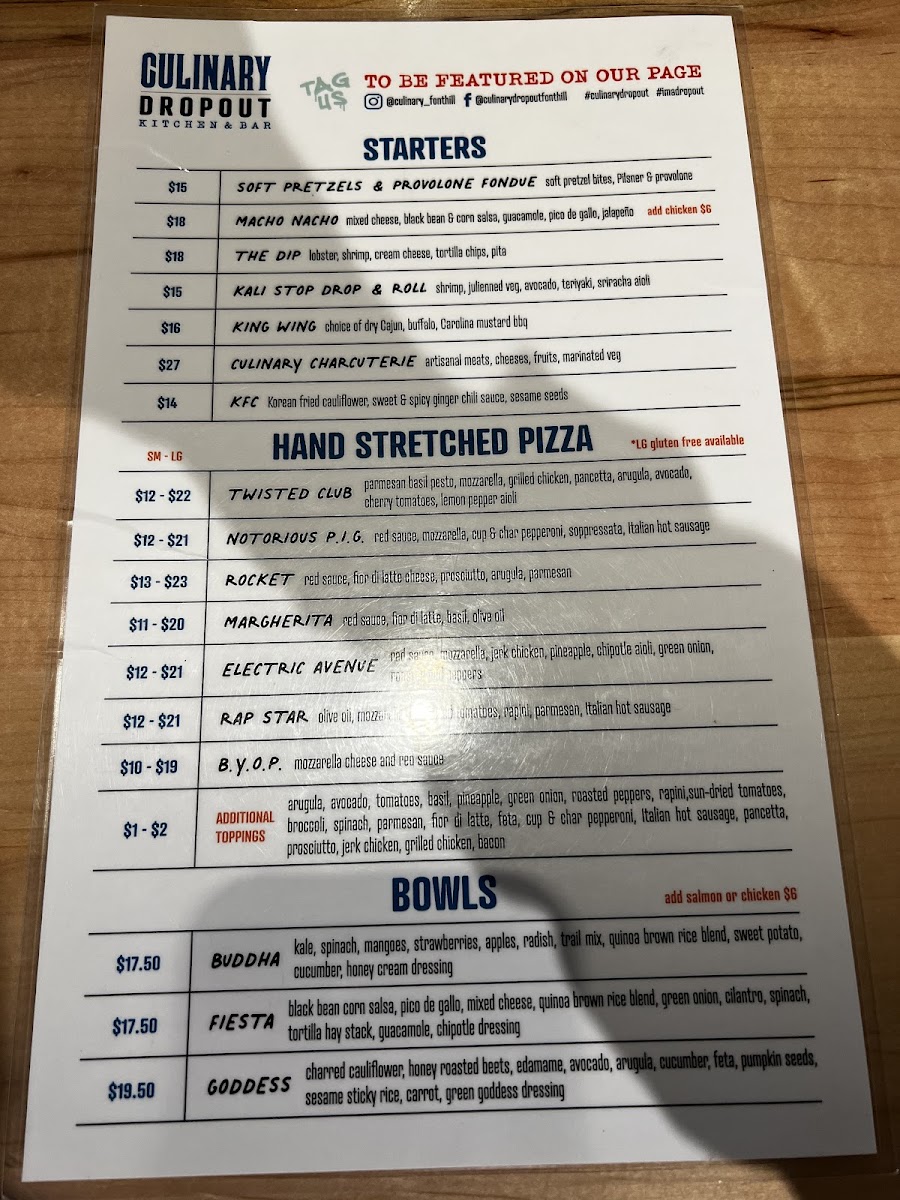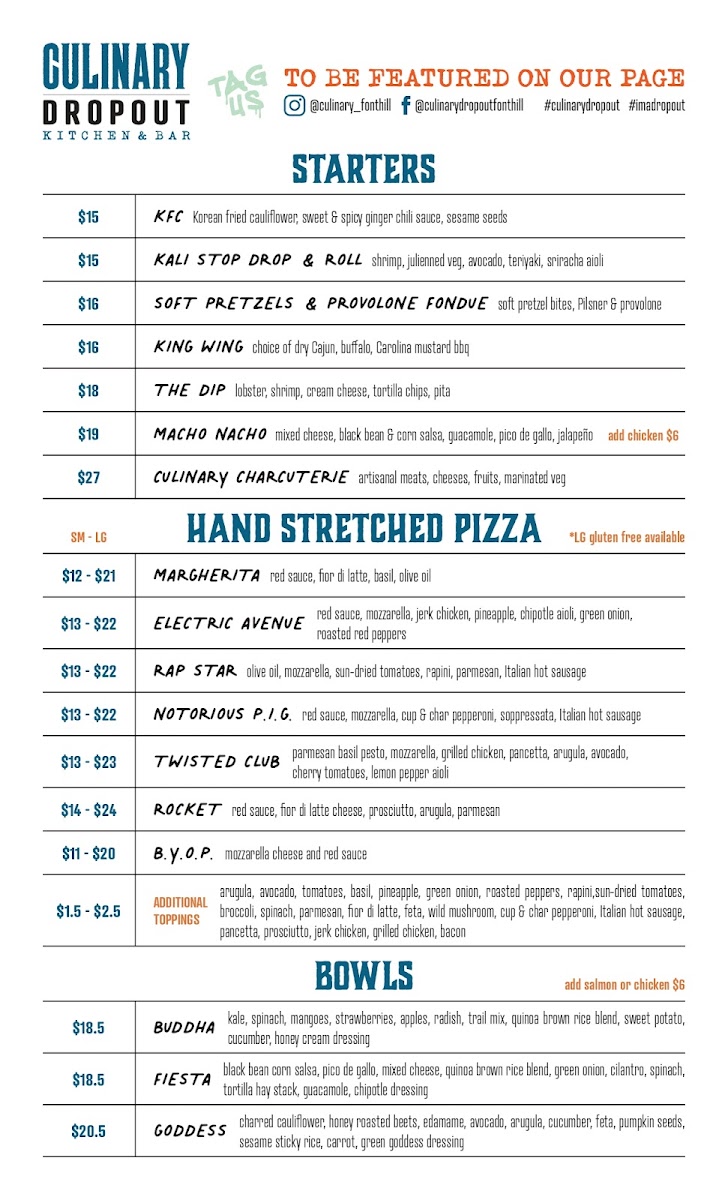 Korean Fried Chicken, Togarashi Spiced Dry Ribs, SM Hand Stretched Pizza Soft Pretzels.